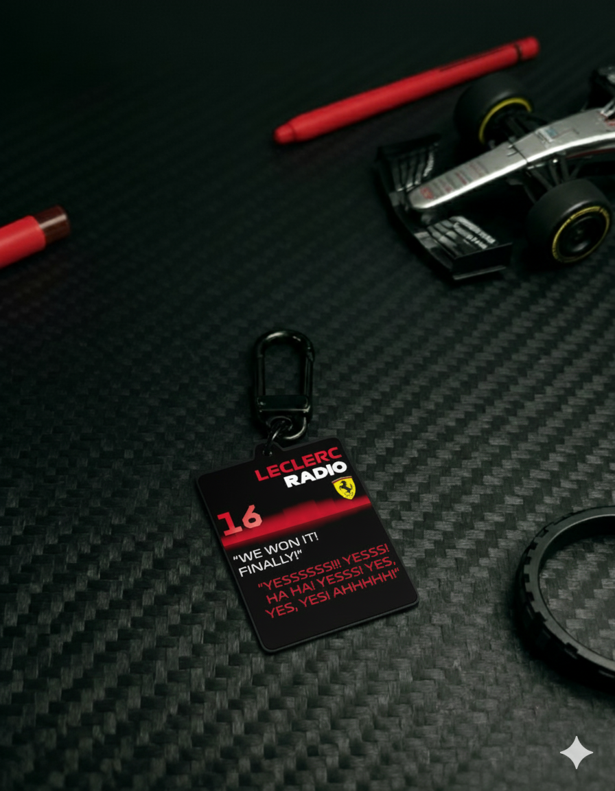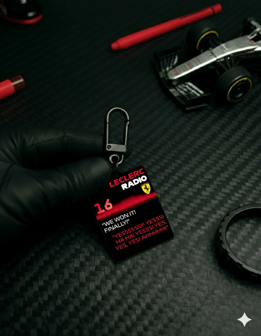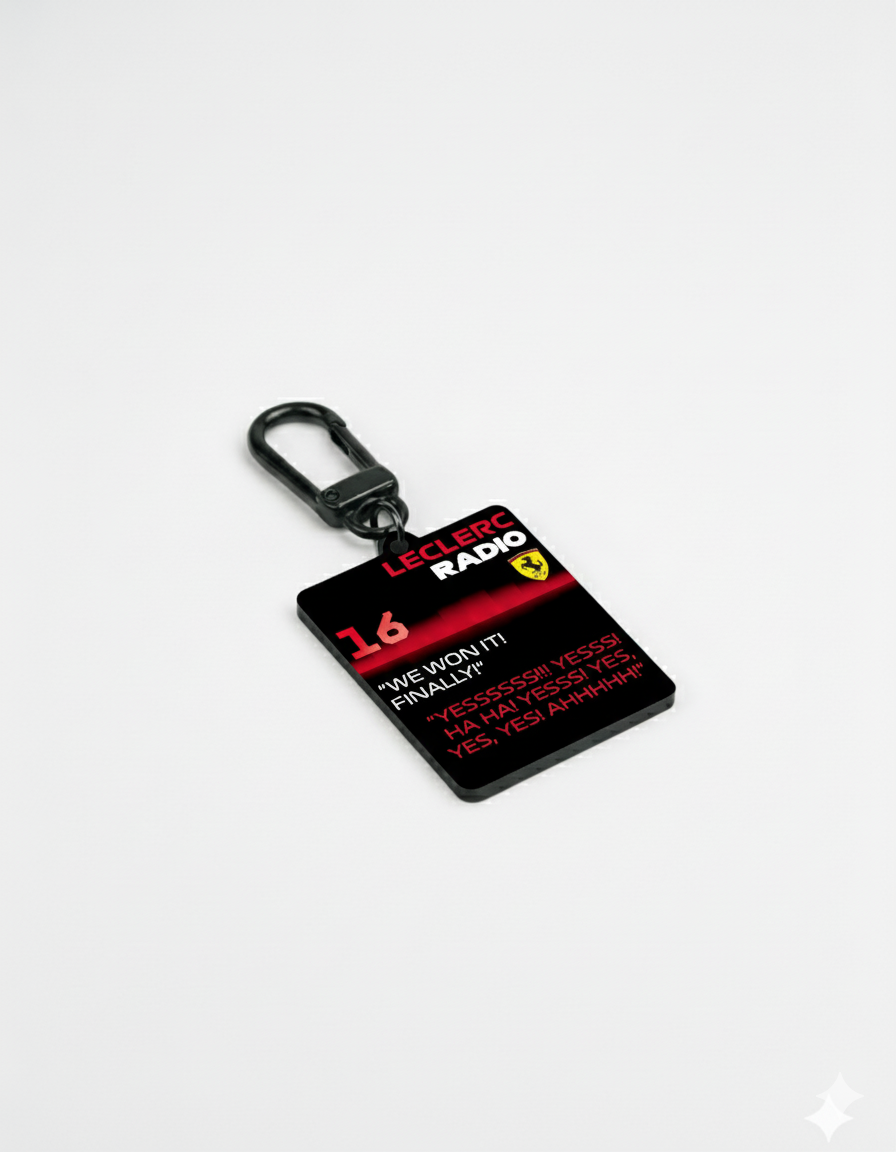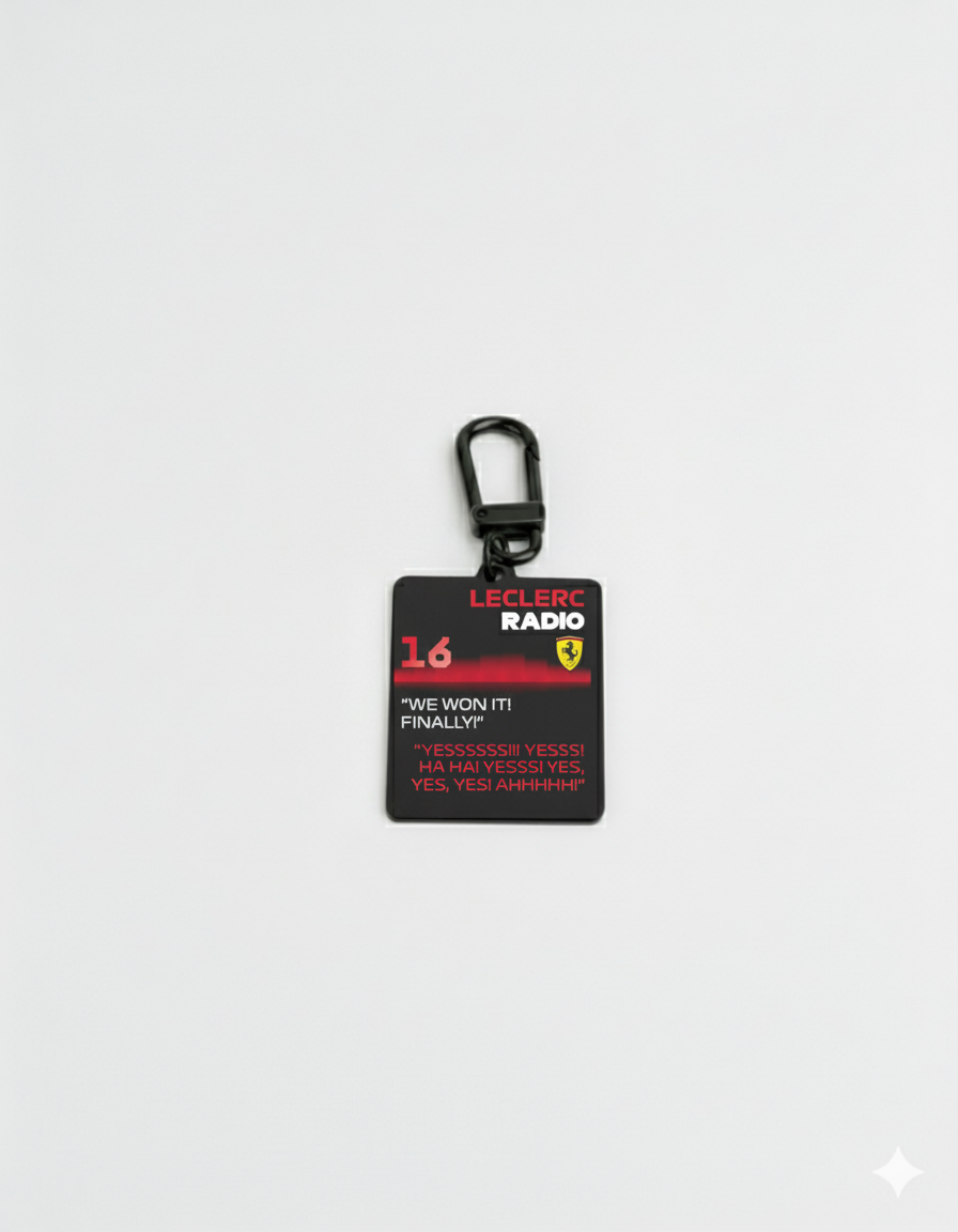 Carry the emotion of Charles' victory with this keychain immortalizing his Monaco Win.