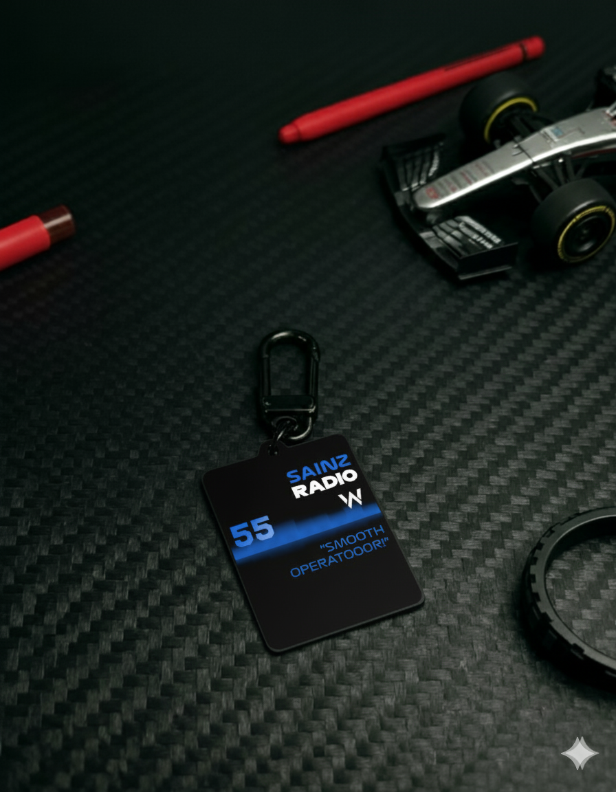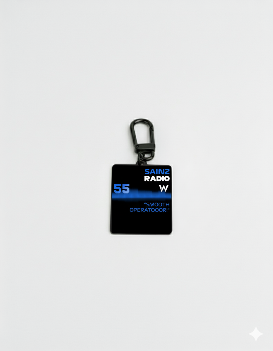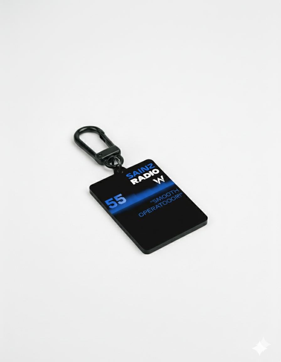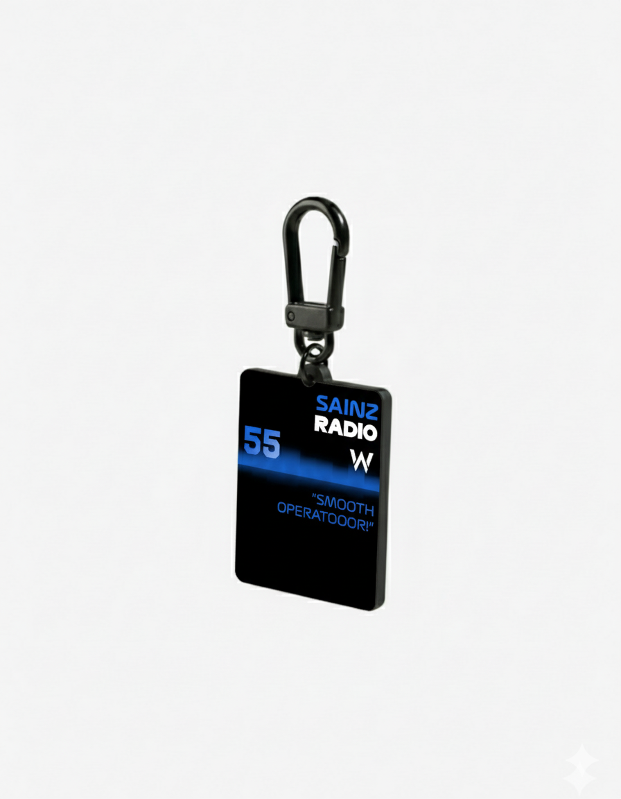 Carry a piece of radio history with this keychain featuring Carlos Sainz’s legendary “Smooth Operator” sing-song call – the fan-favorite moment that became his trademark celebration.